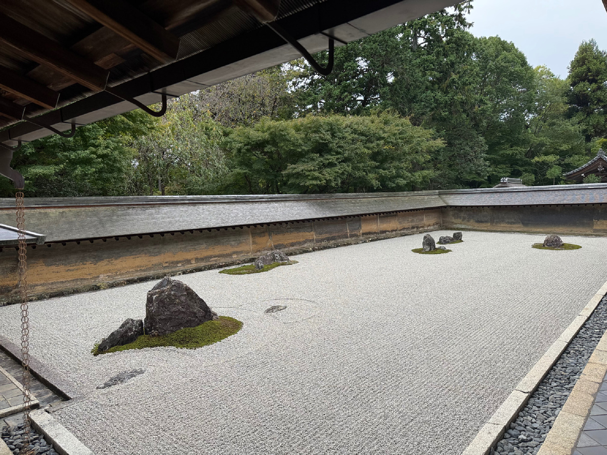 Самый известный сад камней в мире - Реандзи в Киото. Он не самый старый, но самый стильный. Сад камней был построен в 1499 году. В прилегающем парке расположена статуя Будды. Есть трактовка, что геометрия расположения камней в саду Реандзи указывает на эту статую. Самое удивительное открытие при личном посещении сада - до чего же там маленькие камни. И до чего же неказистый сад. И особенно угнетает криво крашенный забор. И лишь спустя полчаса пребывания там я понял этот сад. Главное там - не сад камней, нарочито неказистый, окруженный убогим забором, который криво и пятнами покрашен. И не буйная зелень снаружи, которая является метафорическим изображением жизни. А в контрасте. В контрасте, когда из жизни вырвана часть, отгорожена от жизни забором. Область с другими правилами и скрытой геометрией, указывающей на статую Будды. Безжизненная область траурного белого цвета. На мой взгляд - это метафоричное изображение смерти. По фотографиям это понять было нереально. А вот и забор во