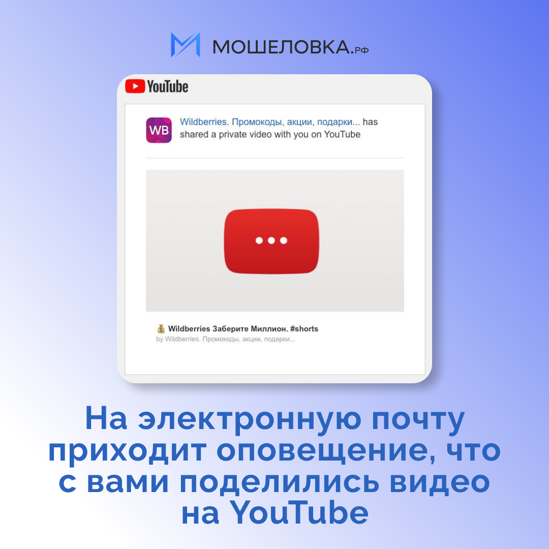 В онлайн-почту приходят письма о крупном выигрыше. Пользователи стали получать электронные сообщения о том, что кто-то поделился с ними видео на Youtube. Перейдя по ссылке в письмах, они оказывались на страничке с роликом от «маркетплейса», который обещает возможность выиграть миллион. «Забрать» легкие деньги возможно, перейдя по ссылке в описание канала, говорится под видео. Всех, кто еще верит в бесплатный сыр в мышеловке, ждут сказочные призы: смартфон за рубль, 5000 рублей на карту прямо сейчас, а еще загадочные «деньги от Павла Дурова». Обманщики, прикрываясь узнаваемым брендом, заманивают беспечных пользователей на фишинговые страницы, ворующие персональные и платежные данные. В итоге жертвы могут оказаться не только без подарков, но и без собственных накоплений. Напоминаем: не переходите по ссылкам от незнакомцев в сети, даже если они надели на себя узнаваемые маски – притвориться в интернете можно кем угодно. Проверяйте любую информацию на официальных страницах брендов и органи