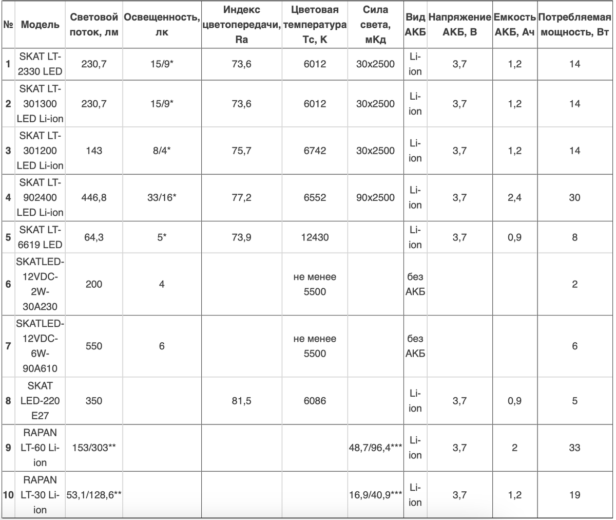 *** - Указаны сила света в кд при положениях переключателя «High» и «Low». Измерение освещённости, создаваемой светильником, проводилось со светильником, расположенным на высоте 3м, параллельно полу. ВКонтакте Telegram Rutube Дзен
