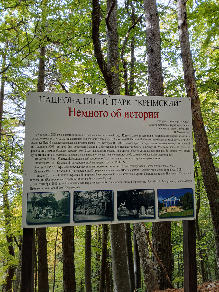 Романовская дорога находится на территории Крымского природного заповедника (с 2015 года – Национальный парк «Крымский») и поистине является одним из самых красивых мест в Крыму. На фото ниже можно ознакомится с историей создания заповедника. Сама дорога была обустроена около 1913 г. и использовалась для доступа к царским охотничьим угодьям. Здесь же находился царский охотничий домик. Но обо всём по порядку. После сильнейшего урагана в ноябре 2023 года часть Романовской дороги (со стороны Алушты) была разрушена и теперь маршрут называется «Царский домик». Маршрут круговой и занимает целый день. Длина в одну сторону составляет приблизительно 40 км. Поэтому настоятельно рекомендую приготовить с собой горячий чай в термосе и перекус, что мы и сделали. Дорога ровная, но есть разбитые участки. Маршрут начинается