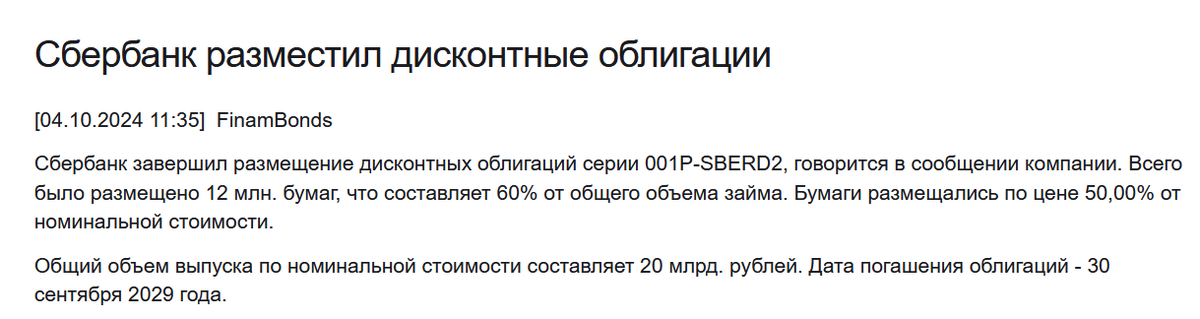 И вдруг Сбербанк выпускает дисконтные облигации на целых 5 лет. К чему это?