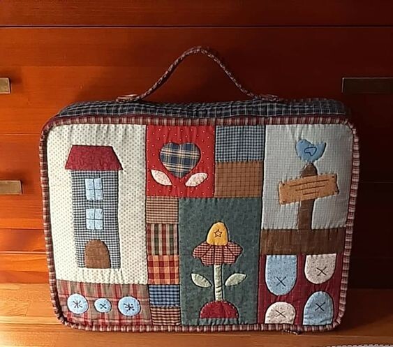 А также можно утилизировать все имеющиеся лоскутки и сшить красивую крышку чемодана в лоскутной технике.