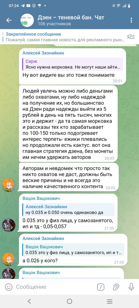Судя по моим доходам у меня минута 0,00000000000001 копейки. Все правильно. Третий день идёт отписка на моем канале. Причина ясна, так ТП мне показывает. Все. Это мы решаем, кто будет на площадке, а кто нет. Молодцы. Было 6138 за три дня уже 6128. Десять человек якобы отписались. В том числе моя родственница, с удивлением увидела, ее отписали. Знакомых тоже. Это нормальная практика для канала в ТБ. Свои доходы я показал. Но я читаю своих коллег и понимаю. Без связей на этой площадке шансов никакого нет ни у кого. А если и местный смотрящий за площадкой, вас не жалует все грустно. Понятно сейчас главное это развлечение. Умные, или заумные статьи никому не нужны. Но простите не верю, когда человек пишет огромные тексты на какие то философские, не связанные с жизнью темы и у него аншлаг. Или рассказ алкоголички Ирины так неужели интересен. Динамики нет. Предложения и о чем, пара фотографий. Если раньше я говорил, что ИА и БВ не проект. Просто им повезло. То и сейчас уверенно скажу, н