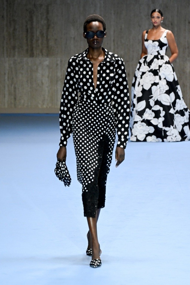 Казалось, всего-то пять лет назад мы восторгались в 2019-м появлению гороха в модных коллекциях. Но затем случилась пандемия и о моде никто и думать не хотел. Носить было некуда, все сидели по домам и волшебное слово Zoom стало очередным шажком в эти странные двадцатые . Сейчас уже на осень и будущую зиму кутюрье намекают на возвращение любимого сочетания черное-белое. Акцент на женственных платьях, как у Москино. Или на стилизованном цветке ландыша- символе Франции, как у Бальмэна. Но он уже становится то ли цветком, то ли горохом. У Дома Elie Saab идея проста- горох! Но он или мелкий на воздушном шелке, создающий своеобразную пену морского прибоя, из которого выходит современная Венера... Или классика открытого платья с постепенным увеличением принта. На будущее и другие Дома смотрят с пригоршней гороха в руке. Вот коллекция Весна-Лето 2025 от Carolina Herrera. Да сочетание двух " размеров горошин" актуально. Эррейра повторяет идею Сааб (смотрите фото чуть выше) и тоже вып
