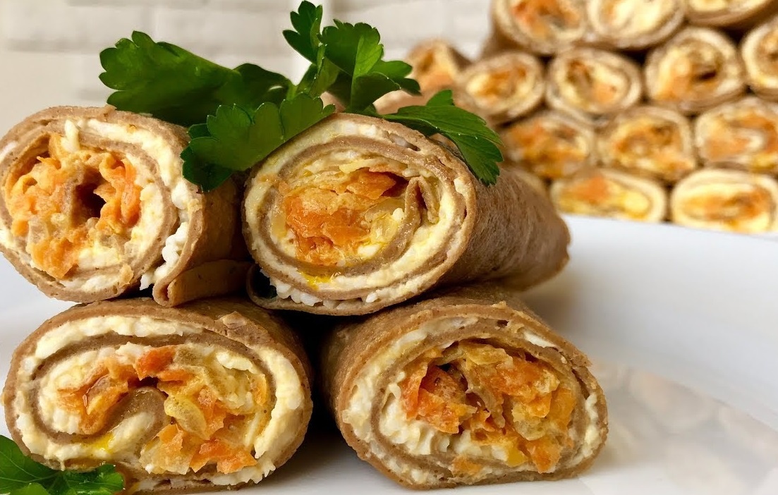 Печёночные блинные рулеты с начинкой из моркови и плавленого сыра — это вкусное и сытное блюдо, которое может стать украшением любого стола. Нежные печёночные блинчики в сочетании с ароматной морковной начинкой и плавленым сыром создают неповторимый вкус. Ингредиенты: Для начинки: Приготовление: Подготовьте ингредиенты для блюда. Печень промойте, удалите плёнки и нарежьте на кусочки. Измельчите печень в блендере или мясорубке. Добавьте яйца, молоко, муку, соль и перец. Тщательно перемешайте. Разогрейте сковороду, смажьте растительным маслом. Выложите тесто тонким слоем и обжарьте блинчики с двух сторон до золотистой корочки. Для начинки морковь очистите и натрите на мелкой тёрке. Плавленый сыр натрите на мелкой тёрке. Чеснок очистите и пропустите через пресс. В миске соедините морковь, плавленый сыр, майонез, чеснок, соль и перец. Тщательно перемешайте. На каждый блинчик выложите начинку и равномерно распределите. Сверните блинчики в рулеты. Готовые рулеты можно украсить зеленью или ма