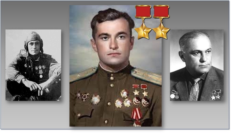 3) Второй Золотой Звездой Героя СССР награждён за выполнение 602 боевых вылетов и участие в 150 воздушных боях, в которых сбил лично 30 и в составе группы 19 самолётов противника (на 20 апреля 1945 года).