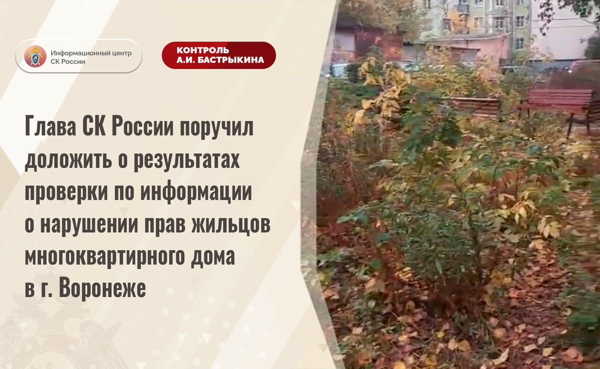 Глава СК России поручил доложить о результатах проверки по информации о нарушении прав жильцов многоквартирного дома в г. Воронеже