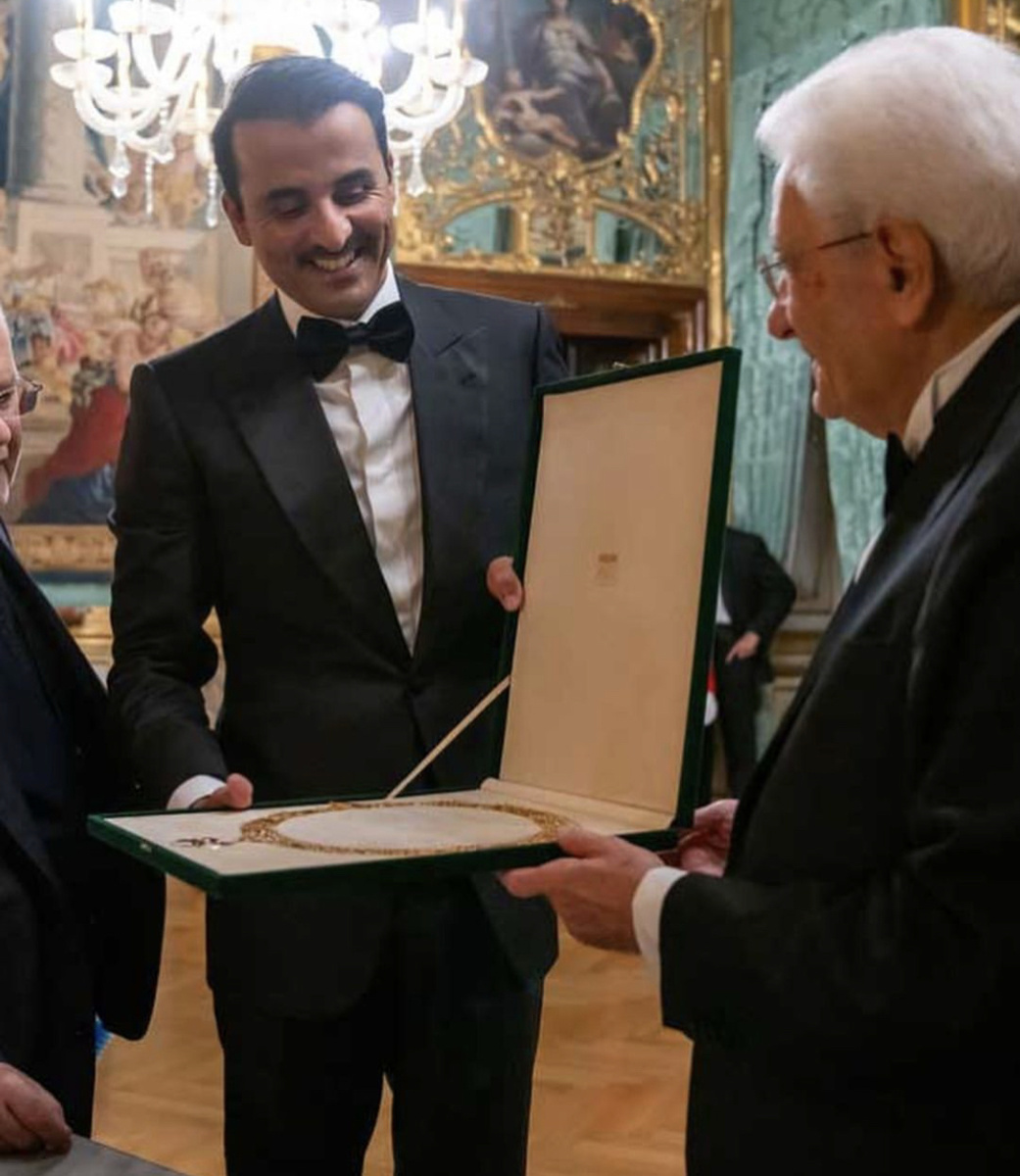 Президент Италии и эмир Катара: итальянцу вручен Меч основателя(главная награда Катара), итальянцы не остались в стороне и тоже вручают награду. А потом был не просто банкет, пир! Это визит одного из самых молодых правителей в мире. В 2018 году Его Высочество шейх Тамим бен Хамад Аль Тани считался самым молодым правящим монархом в странах Совета сотрудничества стран Персидского залива, а также самым молодым правящим монархом суверенных государств по всему миру. Шейх Тамим принял бразды правления в Катаре 25 июня 2013 года, когда ему было чуть больше тридцати, став одним из самых молодых лидеров на мировом уровне.Старший брат отказался от трона в его пользу. Визит в Италию Аль Тани многие в арабском мире активно обсуждают и потому, что неожиданно монарх отказался от традиционных одежд Востока и явился в дорогих сшитых на заказ костюмах, которые готовили ему лучшие итальянские и французские Дома.