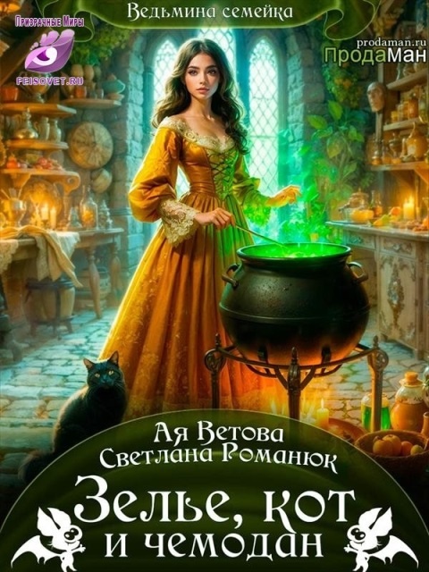 Совершенно очаровательный роман Аи Ветовой и Светланы Романюк «Зелье, кот и чемодан». Пересказывать смысла нет, читать надо. Но если так, немного… Семейство Хольман вынуждено было уехать из столицы к тётушке главы семейства в провинциальный город Эрнвиль. Тётушка замечательная (пифия, кстати), но дом у неё маленький. А уместиться в нём должны и сама тётя Амма, и её племянник Кристоф с женой, и пятеро их детей от двух до семнадцати. Все с талантами, иногда магическими, иногда нет… Вот у двух младших детей талант к увлекательным играм, например. А у старшего сына Сида – к магии иллюзий и ещё… нет, это будет спойлер.)) И у всех, совершенно у всех проблемы! Главная, конечно, как заработать денег. Но ведь и другие множатся постоянно! Кая, старшая и единственная дочь семейства Хольман, хочет поступить в университет, но с её небольшим даром это возможно только на платной основе. Поэтому Кае приходится искать работу. У младшего ребёнка Фриди открывается магический дар (самое оно в два года-то)