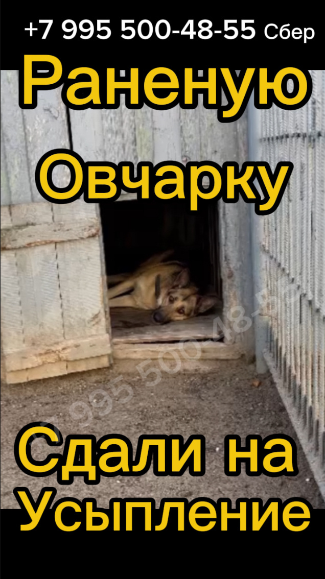 Раненую девочку овчарку привезли на усыпление😩. Ее или сбила машина или избили люди! Это неизвестно. Но она точно никому не нужна. Она с трудом встает, почти не ест и вся покрыта ссадинами. Действовать надо быстро. Ее необходимо показать врачу!!! Но это не будет легко. Она не подпускает к себе даже волонтера которая пытается ее накормить😢. У нее жуткие боли, она страдает. Это видно в ее глазах!!!Помогите спасти девочку🙏🏻🙏🏻🙏🏻🙏🏻. Передержку найти можно, но за нее надо платить, бесплатно этого делать никто не будет !!! Помогите спасти девочку🙏🏻🙏🏻🙏🏻. Срочно нужды средства на визит к врачу, машину, передержку, 🆘🆘🆘 Помогите волонтерам вывезти эту бедняжку 🛟🛟🛟 Не дайте Гомельскому концлагерю сделать своё черное дело!!!! Ей очень хочется жить😢! Может быть Вы хотите взять ее к себе домой? 🙏🏼 Волонтеры доставят!!!! Если нет, не пожалейте копеечки. Вместе мы можем ее спасти!!!! ПОМОЧЬ МОЖЕТ КАЖДЫЙ! ✨Да не оскудеет рука да