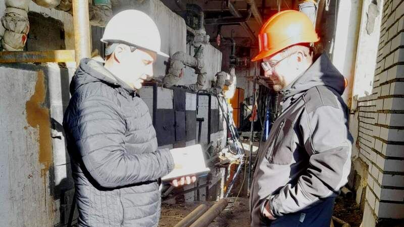 На фото: осуществление главным техническим инспектором труда Могилёвской областной организации Белорусского профсоюза работников местной промышленности и коммунально-бытовых предприятий Павлом КРАВЧИНСКИМ мониторинга соблюдения законодательства об охране труда на строительном объекте “Модернизация котельной снп Голынец Могилёвского района”.