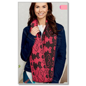 Архив 2017 год, перевод из журнала "Knit Now" № 74. Шарф связан в технике двойного жаккарда, где одновременно вяжется узор для лицевой и изнаночной стороны. Размеры: 135 х 18 см Вам потребуется: пряжа MillaMia Naturally Soft Merino (100% шерсть; 125 м/50 г) - по 150 г цвета фуксии (fuchsia) и черного цвета (Sable), круговые спицы № 2.75mm.