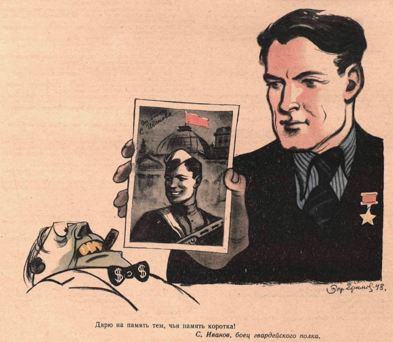 Борис Ефимов. 1948. «Дарю на память тем, чья память коротка! С. Иванов, боец гвардейского полка»