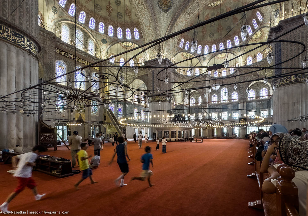 Ещё один немаловажный плюс - в отличие от Айя-Софии, где туристам выделен лишь верхний ярус (где почти ничего не видно), в Голубой мечети можно наблюдать за священнодействием в непосредственной близости.