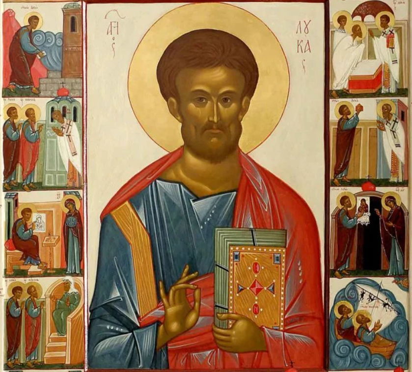 Родина апостола и евангелиста Луки – город Антиохия, что в Сирии. Имя святого является сокращенной формой латинского имени Лукан. Он не был евреем, но веровал в Единого Бога еще до знакомства с Христом, о чем свидетельствуют его знания закона Моисеева и еврейских обычаев, заметные в писаниях апостола. На родине Лука получил блестящее образование в области различных наук и искусств. В знании греческого языка евангелист превосходил прочих новозаветных писателей. Профессией апостола было врачебное дело. Однажды слух о великом Учителе, Чудотворце и Пророке по имени Иисус дошел до Сирии, и Лука отправился в Галилею. Там он познакомился с Христом, Который вскоре принял врача в число Своих менее приближенных, чем Двенадцать, 70-ти учеников. Вместе с остальными из 70-ти Лука получил от Спасителя власть творить чудеса и предшествовал Христу, посещая разные селения и проповедуя о Царстве Божьем. В дни завершения Господом мессианского служения Лука находился в Иерусалиме. Возможно, что он был в ч