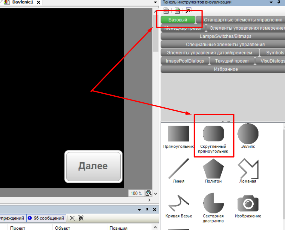 Приветствую всех. Эта статья будет посвящена дистрибутиву CoDeSyS 3.5 SP17 Pacth 3 и панельному контроллеру ОВЕН СПК107. Как на визуализации вывести показания различных датчиков? Если есть вопросы, пишите комментарии в телеге. При желании можно отправить свой проект с фотографией и со своей подписью в каталог проектов. Открываем проект, создаем шаблон. В разделе Базовый добавляем элемент Скругленный прямоугольник. Ну вообще можно любой элемент. После этого залазаем в настройки, ставим стандартный набор опций (Ширина, цвет, высота, и т.д). Внимание, пишем в поле Текст "Давление %2.1f". "%2.1f" - это формат обращения к переменной, заданной в поле Текстовая переменная. 2 - это целочисленная, .1 - это десятичные, f - тип переменной. Типы бывают такими: В поле Текстовая переменная - указываем переменную, которую будем показывать в прямоугольнике.