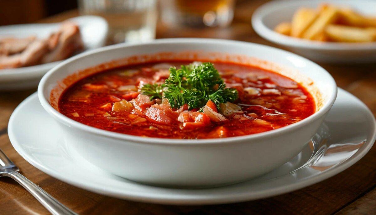 Когда на улице холодает, а на душе хочется чего-то согревающего, борщ — это как раз то блюдо, которое превращает обычный ужин в семейное торжество. Этот традиционный суп в моём доме всегда ассоциируется с уютом и теплом. Борщ — это не просто суп, это ритуал, блюдо, которое можно приготовить на семейные обеды или ужины, на праздники или просто для того, чтобы побаловать своих близких чем-то вкусным и домашним. Ароматный, наваристый, с ярким цветом и насыщенным вкусом, борщ занимает почетное место на столах многих народов. И, что самое интересное, у каждого есть свой секретный ингредиент, который делает его борщ уникальным. Сегодня я хочу поделиться с вами рецептом классического борща — таким, каким его готовили в моем доме, с мелкими, но важными деталями, которые придают блюду его особый вкус и характер. ⏲️ Время приготовления: 2-3 часа 🍝 Порций: 6-8 Чтобы приготовить классический борщ, нам понадобятся: 1. Приготовление бульона. Начнём с самого важного — наваристого бульона. Для этого
