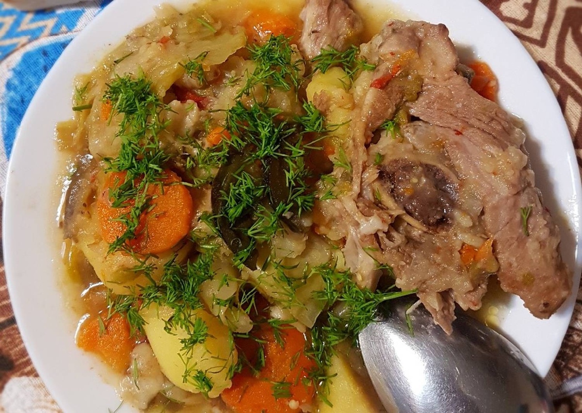 Домляма — это традиционное блюдо узбекской кухни, которое представляет собой слоёное рагу из мяса и овощей. Оно готовится в казане или другой глубокой посуде, которая позволяет сохранить все ароматы и вкусы ингредиентов. Ингредиенты: Приготовление: Мясо нарежьте небольшими кусочками и обжарьте на растительном масле до золотистой корочки. Лук нарежьте полукольцами, морковь — соломкой, болгарский перец — полосками. Помидоры нарежьте кубиками. Овощи добавьте к мясу и тушите 5-7 минут. Картофель нарежьте крупными кусочками и добавьте к мясу с овощами. Капусту нашинкуйте и добавьте в казан. Посолите, поперчите, добавьте специи по вкусу и тушите под крышкой на медленном огне 1-1,5 часа. Домляма готова! Подавайте её горячей, украсив зеленью. Приятного аппетита!