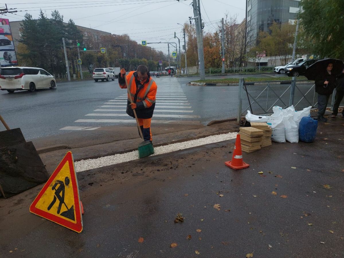 Во Владимире на оживлённом перекрёстке уложили тактильную плитку