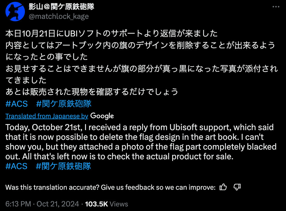 Похоже, Ubisoft наконец устраняет проблему в артбуке Assassin's Creed Shadows, связанную с использованием флага реальной исторической реконструкторской группы без разрешения. Этот случай мог бы остаться навсегда запечатленным в артбуке, но теперь компания решила исправить ситуацию. Проблема была впервые замечена в июне участником группы Sekigahara Teppo-tai, который заметил флаг своей группы на двух концепт-артах для Assassin's Creed Shadows. Хотя флаг был маленьким на изображении, его можно было легко распознать по названию группы на передней части. В июле Ubisoft Japan сделала заявление, что группа приняла извинения, и компания прекратит использование этого изображения, за исключением его присутствия в коллекционном издании артбука. На тот момент казалось, что вопрос был закрыт, но недавно появилась новая информация. Пользователь твиттера @matchlock_kage, тот самый член Sekigahara Teppo-tai, поднявший этот вопрос, сообщил, что Ubisoft связалась с ним, заявив, что теперь возможно полн