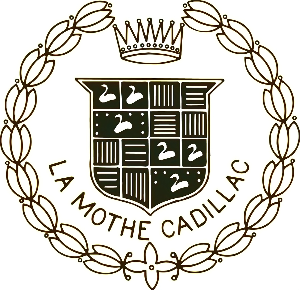 Эмблема Cadillac, также относится к маркизу Кадийяку и является его гербом. Зарегистрированный в 1905 году знак состоял из короны, говорящей о принадлежности де Ля Мотов к графам Тулузы и состоятельности рода. Щит подчеркивает храбрые начала рода, но на гербе маркиза он был круглым, у автокомпании использовался дизайн щитов крестоносцев. Уточки символизировали младших братьев, которым предстояло подняться на «крыльях доблести», а три утки олицетворяли святую троицу, а черно-золотая гамма говорила о мудрости и богатстве. Пояс же являлся символом верности и воинской славы.