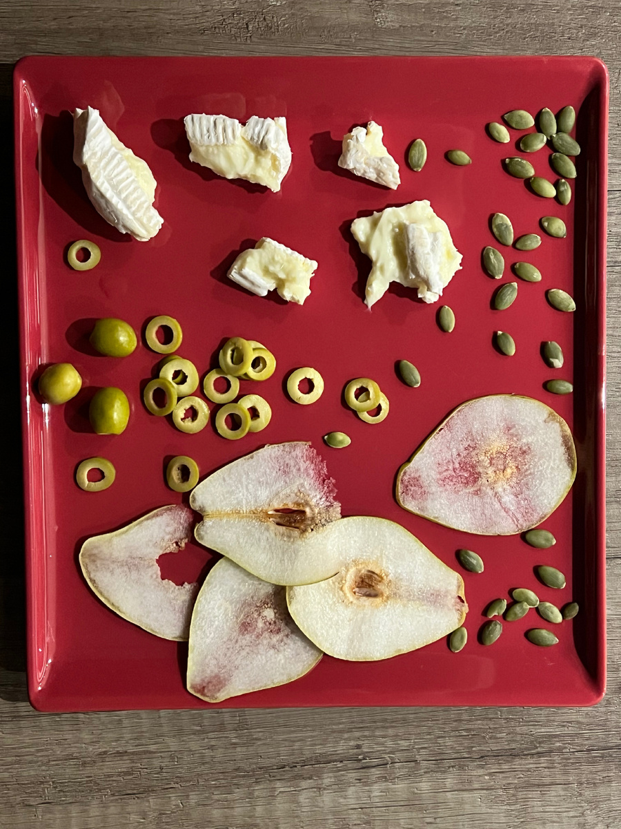 У нас сегодня смена дислокации. Так что ни супов, ни других серьезных блюд я не готовлю. Но мы приехали к моей сестре, а значит вечером нам предстоит по бокалу вина (хорошо что сейчас выпускают бокалы разных размеров) и приятная беседа. А к приятной бокальной беседе что нужно? Правильно - закуска. Что-то легкое, несложное и быстрое. А что у меня с собой? С собой у меня камамбер (мм, плесень) и груши. А еще держите у себя в морозилке слоеное тесто. Ира (сестра) молодец, у нее лежит, меня ждет. Если вдруг внезапно нагрянет закусочная встреча, то вы на него всегда можете что-нибудь кинуть и в духовку. Хоть фарш, хоть грибы. Ну а у нас выпендрежно-утонченно сегодня. Короче, разморозьте тесто. Слегка его раскатайте, а можете и просто пальцами растянуть (деревенский шик, да да). Затем берете груши. При чем такие, которые вы в жизни живьем есть не будете, если вам дороги ваши зубы. Но нам их печь, по-этому и берем потверже. Если груши будут мягкими, то они просто впитаются в тесто при выпечк