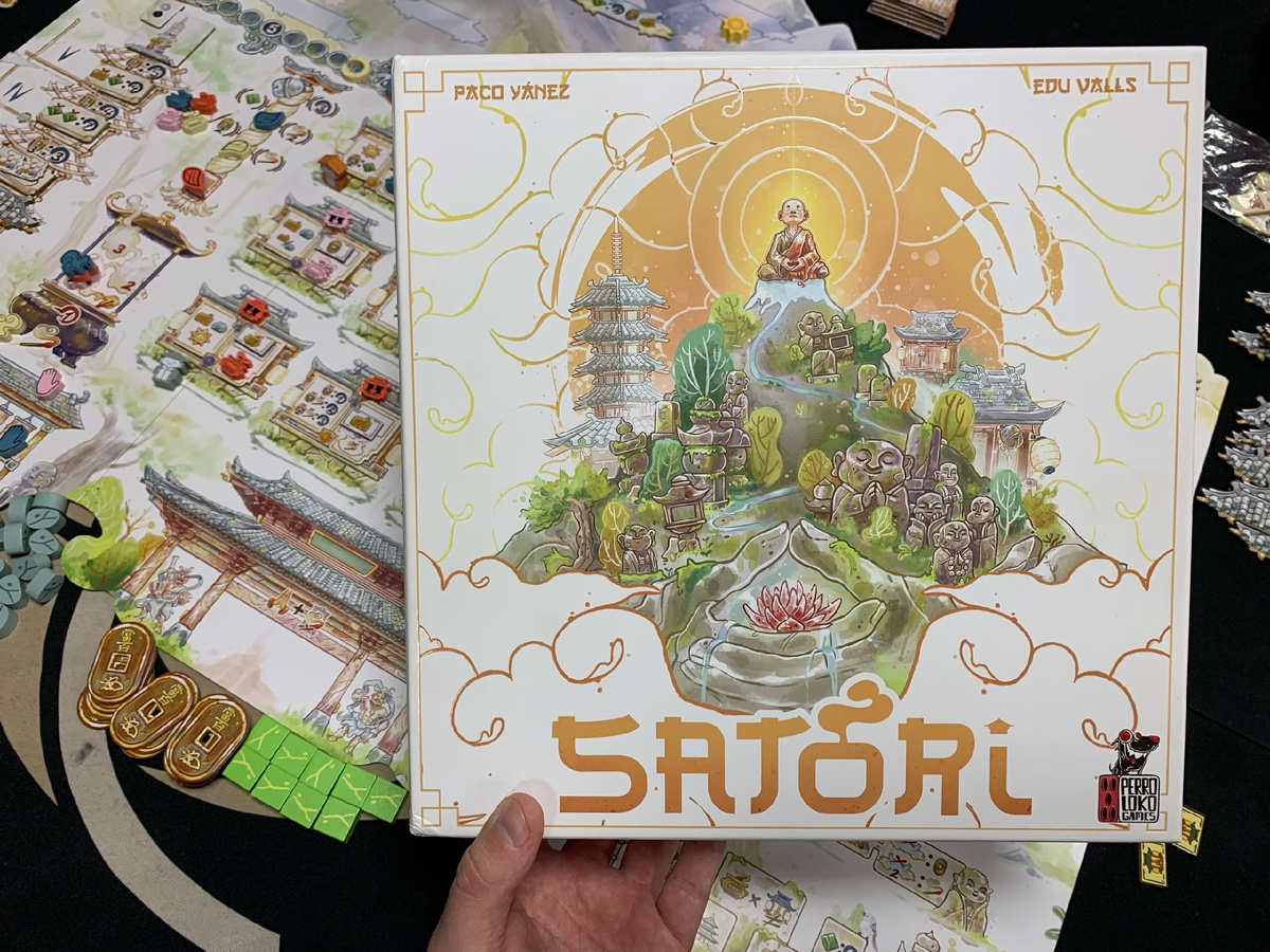 В Сатори игроки соревнуются за продвижение по духовному пути (ака победные очки). Для этого вы построите новые храмы, где смогут молиться паломники, пригласите мудрых монахов, которые достигли просветления и внесете вклад в строительство великой пагоды, чтобы превратить ваш город в сердце дзен-буддизма.