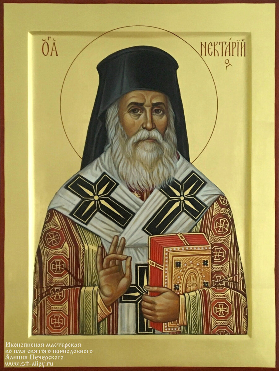 Святитель Нектарий, в миру Анастасий, родился недалеко от Константинополя в 1846 году. Его семья была благочестивой, но бедной, и в 14 лет Анастасий отправился в Константинополь, чтобы устроиться на работу и оплачивать своё обучение. Его взяли на табачную фабрику. Средств к существованию постоянно не хватало, и отрок написал письмо Самому Господу, в нём он просил помочь ему купить обувь и фартук для работы. На конверте он так и подписал - "Господу Иисусу Христу на Небеса". Письмо попало в руки соседа - торговца, которого Анастасий попросил отнести конверт на почту. Мужчина прочитал письмо и был удивлен силой веры юноши. Он отправил Анастасию деньги от имена Бога. В 22 года Анастасий переселился на остров Хиос и стал работать учителем. Он любил своих учеников и они отвечали ему тем же. Вместе они создали хор и пели в местной церкви. Но всё же душа его тянулась к Богу и Анастасий ушёл в монастырь, где принял постриг с именем Нектарий. Его рукополагают сначала в священники, а в 1889 году