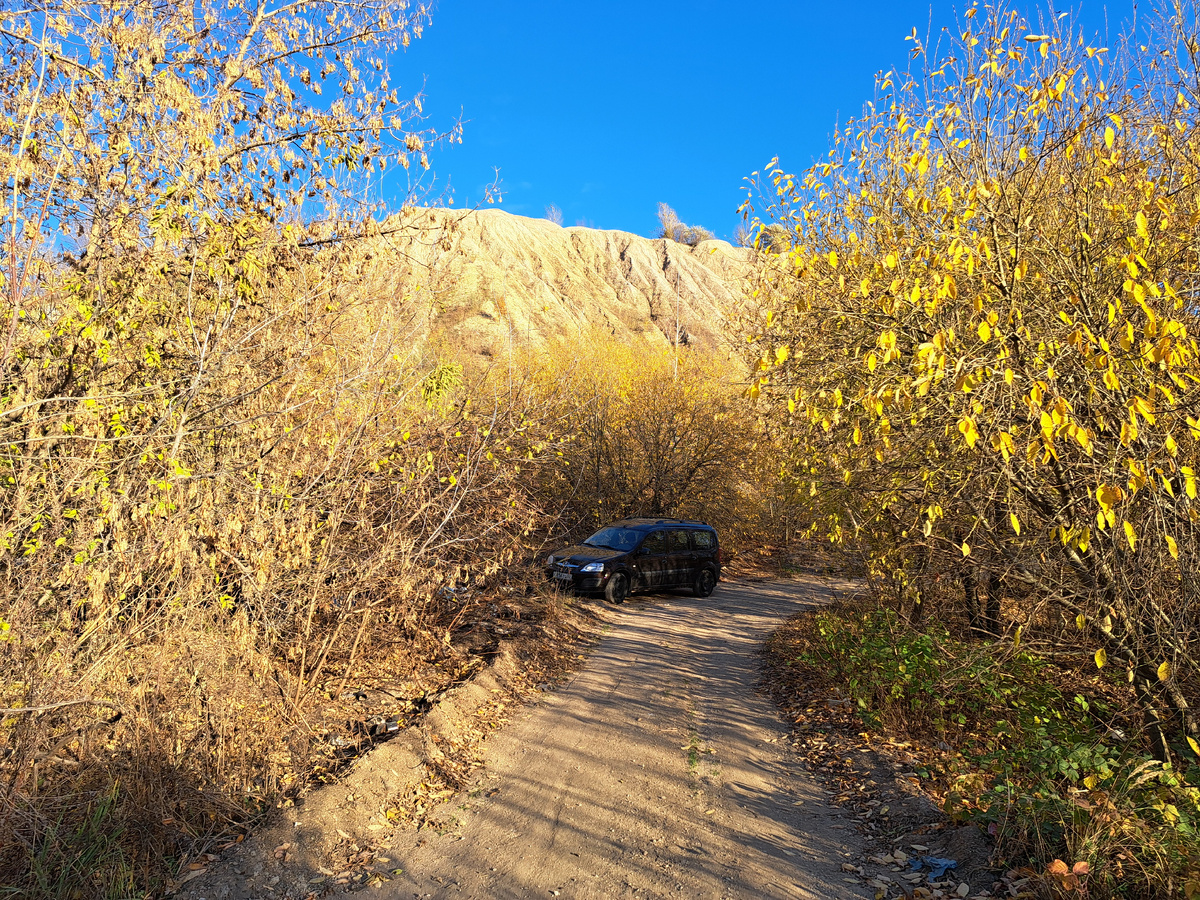 Несведущим людям возможно покажется, что за моей машиной маячат горные вершины, но аборигены вам точно скажут, что там находится щебкарьер, но горы действительно живописные