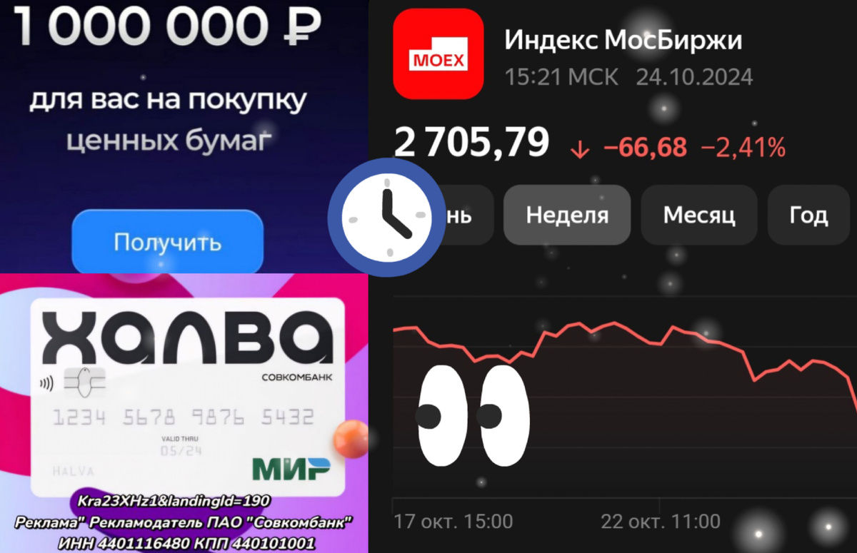 💬Дорогие друзья, кто еще не успел поучаствовать в акции от Совкомбанка 1.000.000 на инвестиции про которую писал тут рекомендую это сделать прямо сейчас. 📉Акции уже хорошо упали перед возможным повышением ключевой ставки. Поэтому есть шикарная возможность получить неплохой доход на их росте. ❓Как участвовать 1️⃣ Оформляем карту рассрочки Халва от Совкомбанка по ссылке ❗Нужно именно карта Халва, другие карты Совкомбанка не подойдут по условиям 2️⃣Заполняем форму на этой странице, выбрав комбинацию из трех акций. Я выбрал Норильский Никель, Сбер и Роснефть 💬Придет смс о включении вас в акцию. 3️⃣ В течение 10 календарных дней открываем и пополняем брокерский счет на сумму от 10 000 рублей. Брокер не требует покупать что то на эти деньги, но если не хотите что бы они лежали мёртвым грузом, можно взять фонд денежного рынка LQDT с ожидаемой доходностью под 18%. Как я и сделал 👇 🔥Кстати, счёт я пополнил Кредитной картой Сбера с сохранением льготного периода. Если интересно как я