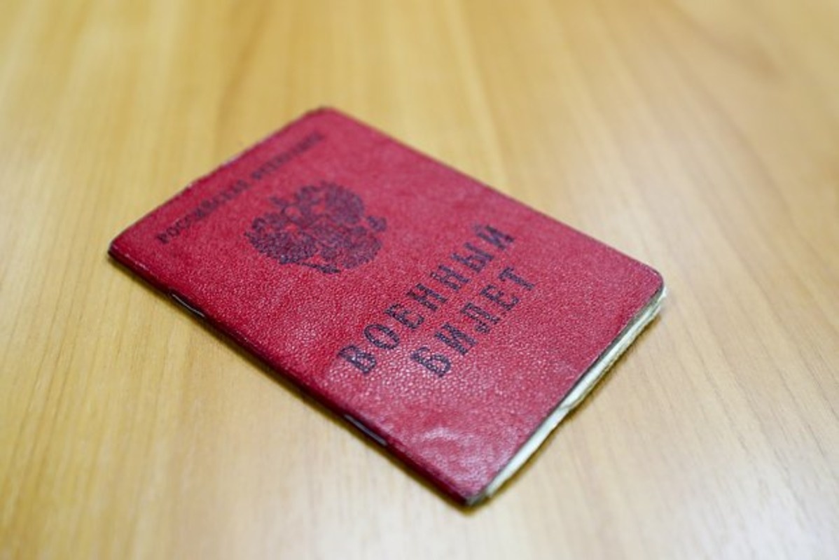 На фотографии видно военный билет с стихотворением, написанным на странице «особых отметок».