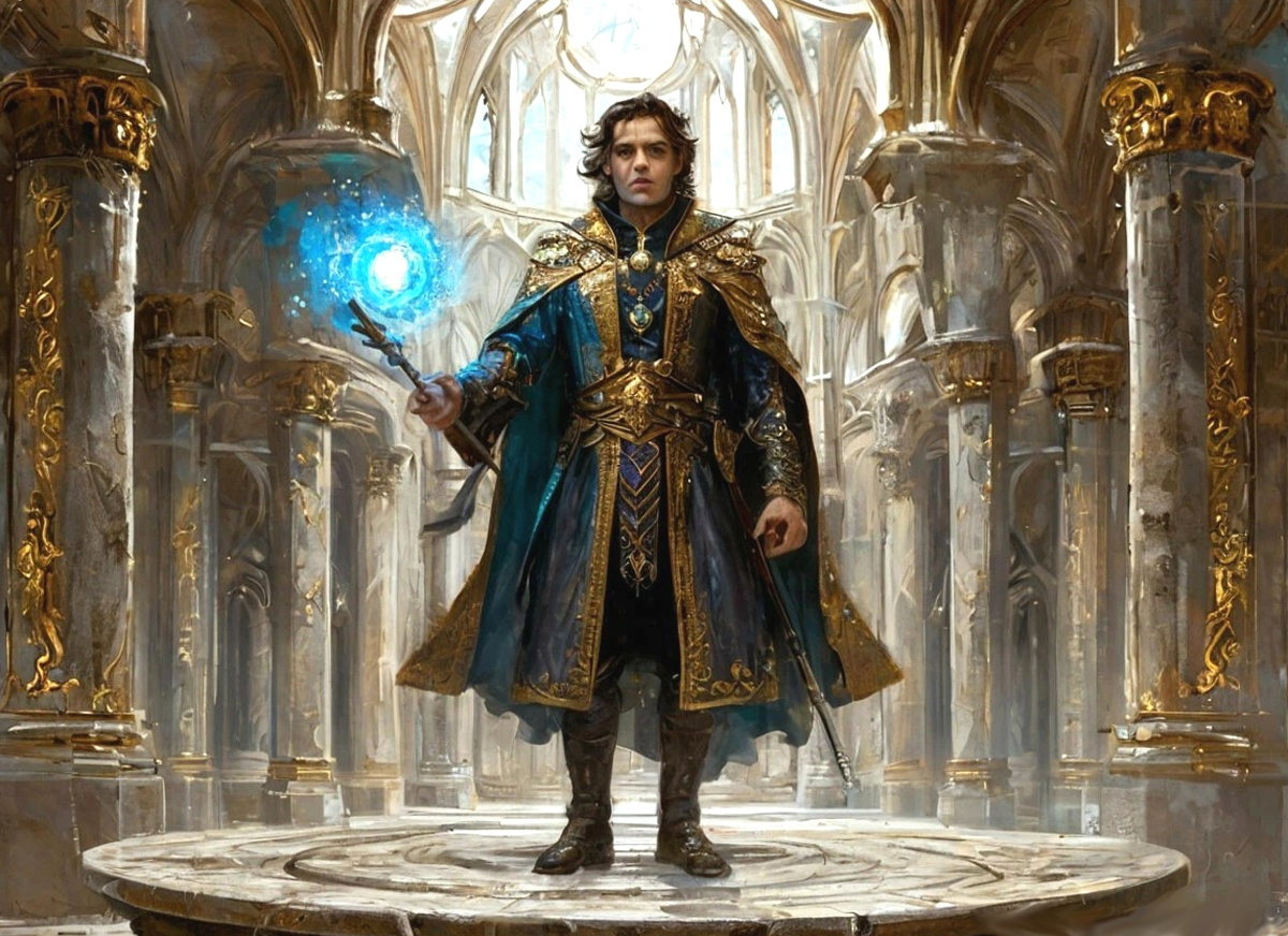 Он поднял руку с небольшим прибором, похожим на короткий жезл и указал им в сторону панели, на которой были расставлены десятки каменных пластин с магическими символами. В ту же секунду символы на пластинах начали вспыхивать ярким светом и тут же гаснуть. Их последовательность и скорость, с которой они зажигались, были просто невероятными. Подчиняясь активированным формулам, каменный диск, на котором стоял гость, перевернулся и плавно опустился на пол.