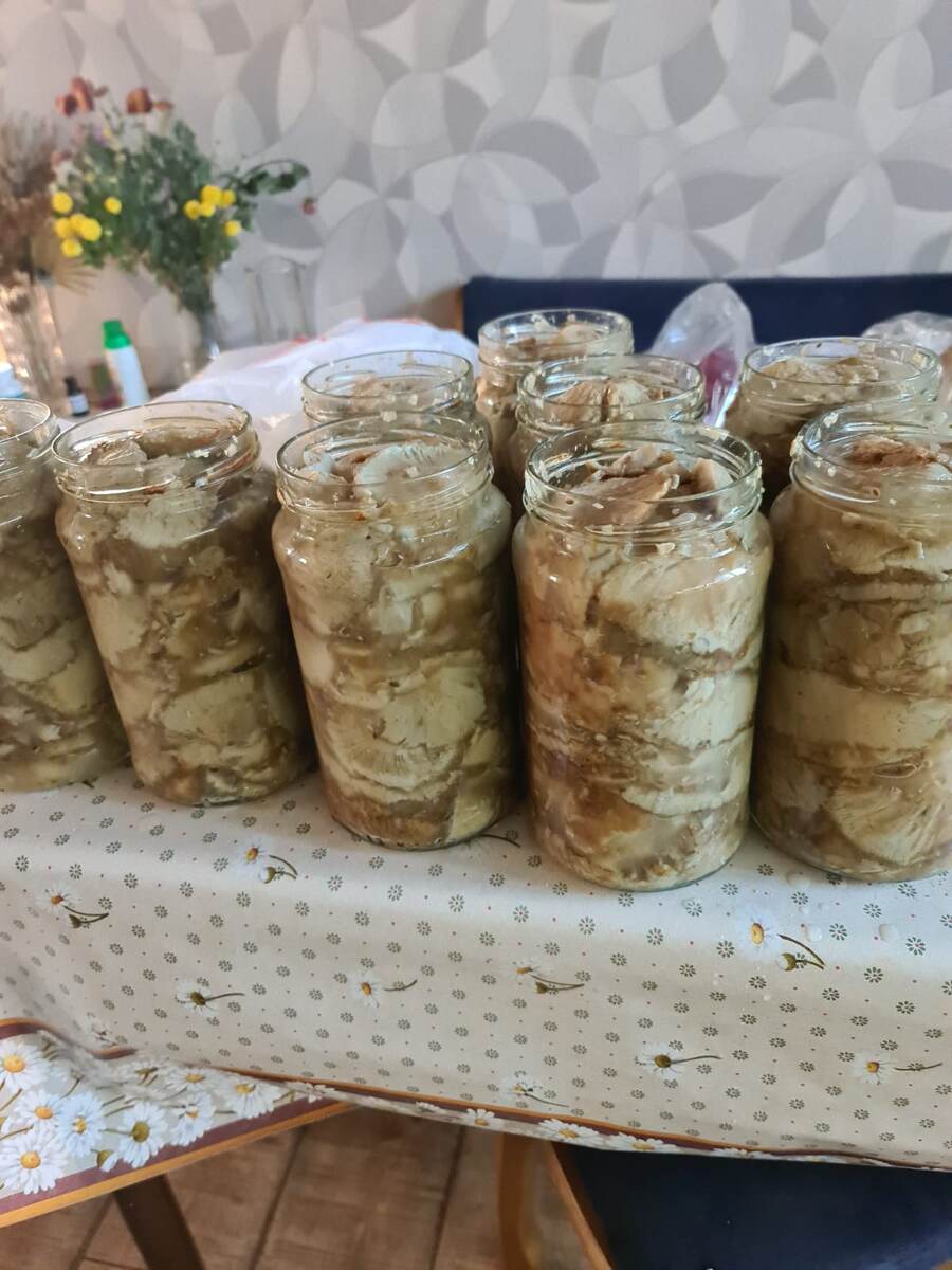 А дома еще немало текущих дел накопилось. Вот мы с мужем грибы в банки переложили с ведра, в котором они солились и спустили их в погреб.