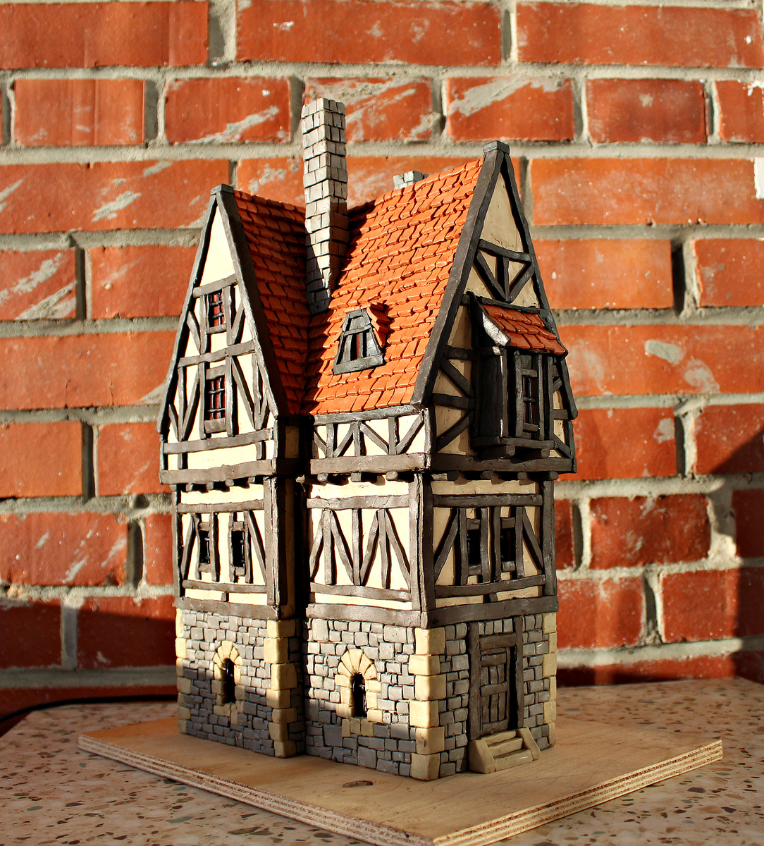 В детстве мне очень нравилось лепить из пластилина. В основном это были макеты различных строений: средневековых замков, соборов и даже кораблей. С тех пор прошло много времени, творения детских рук не сохранились. Однако последний мой замок дожил до 2004 года, о чём имеется видео. И вот на днях, пересматривая тот видеоролик, мне захотелось повторить опыт прошлых лет. Купил пластилин и начал создавать макет средневекового городского дома. Вначале сделал каркас из картона, устроил в нём внутреннее освещение, а затем, как в былые времена, кирпичик за кирпичиком построил дом. Предвижу, кое-кто скажет, а что здесь такого? Всего лишь детское увлечение. Пожалуй, они будут правы, но лишь отчасти. Антуан де Сент-Экзюпери как-то сказал: «Все взрослые когда-то были детьми, только мало кто из них об этом помнит».