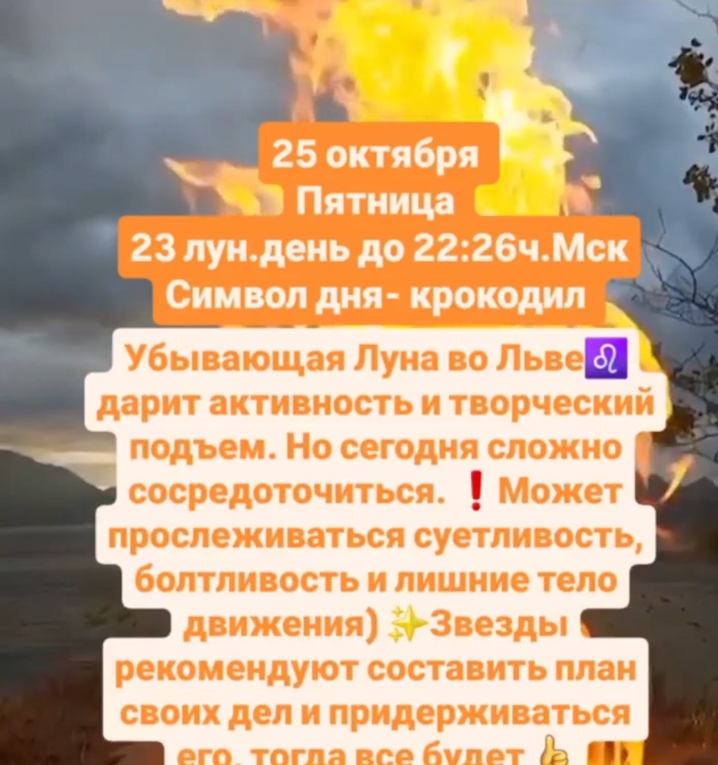 Убывающая Луна во Льве♌️ дарит активность и творческий подъем. Но сегодня сложно сосредоточиться. ❗️Может прослеживаться суетливость, болтливость и лишние тело движения) ✨️Звезды рекомендуют составить план своих дел и придерживаться его, тогда все будет 👍 В 23 лун.день легко переоценить свои возможности ✔️воздержание ✔️покаяние ✔️уборка ✔️очищение огнем🔥 Сны понимать с точностью наоборот ✅️Стрижка ✅️ покупки #гороскоп #астрология #луна #астрологияонлайн #астропрогноз #овен #телец #близнецы #рак #лев #дева #весы #скорпион #стрелец #козерог #водолей #рыбы #затмениесолнца #солнечноезатмение #затмение #новолуниевблизнецах #загадываемжелания #загадайжелание #желание #Венера #мечтысбываются #полнолуние