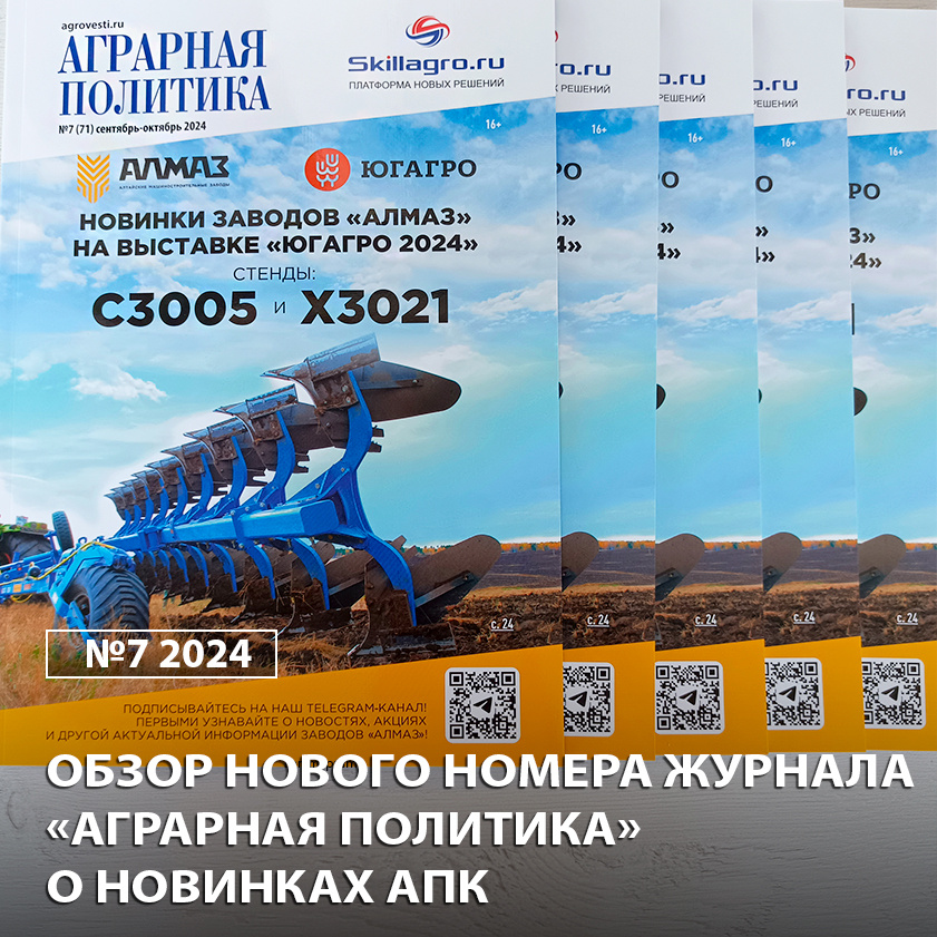 ❗️Представляем вашему вниманию новый номер журнала о новинках и инновациях АПК «Аграрная политика». В №7 (сентябрь-октябрь 2024) вошли следующие материалы: — Заводы «Алмаз» представят новинки техники на выставке «ЮГАГРО 2024». — Опыт работы трактора ОПТИТЭК ANTARES TS 2604 в агрофирме «Племзавод Заря». — Опыт применения нового деструктора стерни Биокомпозит Деструкт. — Опыт применения БПЛА самолетного типа Альбатрос М5 Agro в АО «Московское». — Опыт применения нового российского автопилота Итэлма в ООО «МВС Агро». — Росагролизинг поддерживает стратегические российские инновации. — Как снизить себестоимость продовольственного материала? Рекомендации от компании «Альфа-Трейд». — Комбайн NOVA 4WD: апгрейд в полном приводе. — Практические рекомендации по возделыванию гороха в условиях Урала и Сибири от BASF. — Семена, которые приносят прибыль – Германский Семенной Альянс. — «Это оптимальное сочетание преимуществ» – опыт применения трактора Ростсельмаш 2400 в Тюменской области. — Новое поко