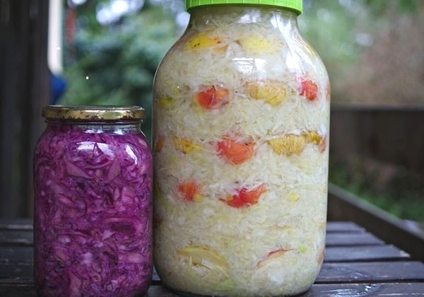 Во время бурного брожения каждый день открывайте банку, утрамбовывайте капусту и снова закрывайте. Через 3-4 дня банку уже не нужно будет открывать, потому что брожение утихнет. Оставьте маринованные яблоки с капустой на 7–10 дней при комнатной температуре, а затем переместите их в прохладное место.