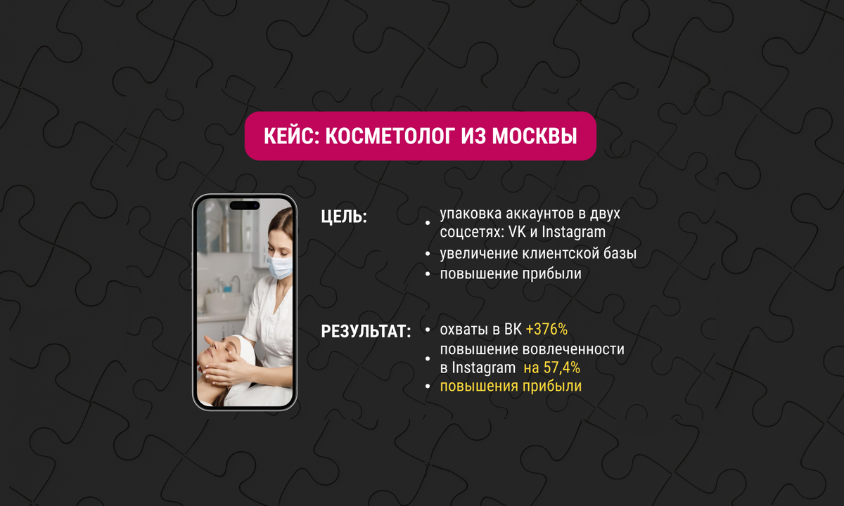 Кейс: продвижение косметолога из Москвы в запрещенной соцсети: спасли аккаунт от блокировки и повысили охваты.