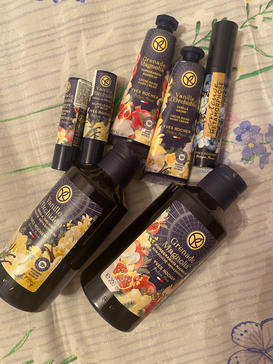 Всем привет! Хотела поделиться с вами отзывом на новогоднюю лимитированную коллекцию от марки ив роше. Посмотрите, какая она красивая! А какие ароматы! Я взяла себе тушь для ресниц, гели для душа, бальзамы для губ и крем для рук. В коллекции два аромата: -ваниль и орхидея -гранат и магнолия Мне понравились оба! Хотя я очень не люблю ваниль. Аромат ванили очень нежный, не приторный, очень приятный. Гранат идет с легкой кислинкой. Гели прозрачные, отлично пенятся, кожу не сушат. Крема для рук хорошо увлажняют кожу, оставляют легкий аромат на руках, не жирнят. Бальзамы для губ хорошо увлажняют, защищают от холода. Тушь -обычная тушь, просто в красивом новогоднем оформлении. Я очень осталась довольна данными продуктами. И возможно продублирую покупку.