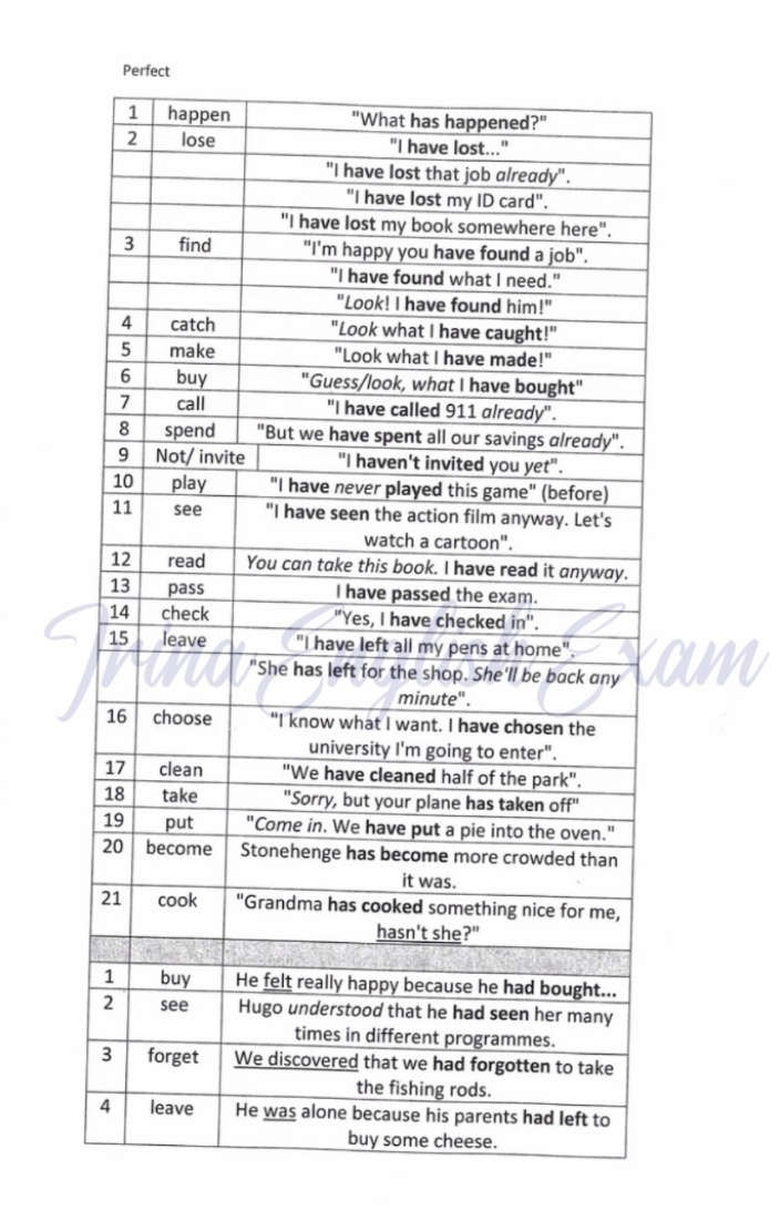 Всем привет! В этой статье представлена таблица с примерами употребления времён Present Perfect и Past Perfect в заданиях Раздела 3 ОГЭ по английскому языку (задания по грамматике). Данные предложения встречаются в упражнениях из открытого банка заданий ФИПИ (ОБЗ). Основными сигналами на Present Perfect на экзамене в заданиях Раздела 3 для ученика являются: ⚠️ already - уже (в утвердительном предложении) ⚠️ yet - ещё (в отрицательном предложении) ⚠️ never - никогда (никогда раньше не делал/ личный опыт) 2. I have lost that job already. Я уже потерял ту работу. 9. I have not invited you yet. Я тебя ещё не пригласил. 10. I have never played this game. Я никогда раньше не играл в эту игру. Кроме того, на Present Perfect указывают слова Look! (Посмотри) и Guess! (Угадай!). Когда человек хочет показать другому свои достижения и результаты. 4. Look what I have caught! Посмотри, что я поймал! 6. Guess what I have bought! Угадай, что я купил! 1. He felt really happy becaus