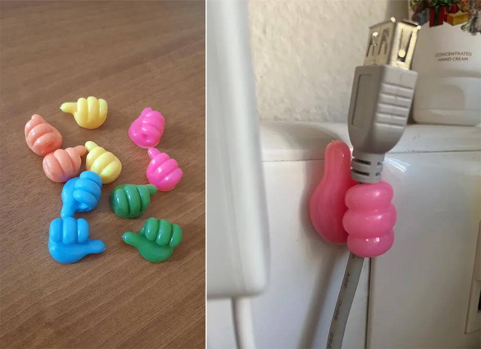 Привет, любители маркетплейсов! Как ваш шопинг-настрой? На этот раз я решила устроить рейд по Вайлдберрис в поисках недорогих, но практичных товаров. Сегодня в обзоре – полезные вещицы до 500 рублей, которые так и просятся в корзину. Цена 457 ₽. Артикул 210987798 Надоело, когда провода от зарядки, наушников и прочей техники вечно путаются и валяются где попало. Поэтому решила попробовать эти силиконовые фиксаторы-кулачки. Десять штук в упаковке, разноцветные, крепятся на двусторонний скотч. Клеятся практически на любую гладкую поверхность: дерево, пластик, плитку – проверено лично. Держат довольно крепко: провод от зарядки телефона, наушники, даже небольшой удлинитель – всё на месте. Сами держатели маленькие, около 2 см в ширину, сделаны из силикона. Выглядят довольно забавно, как маленькие разноцветные кулачки. Кстати, они не все одинаковые: часть смотрит влево, часть вправо – мне это даже понравилось, можно подобрать под конкретную ситуацию. Приклеила парочку на кухне, чтобы провод о