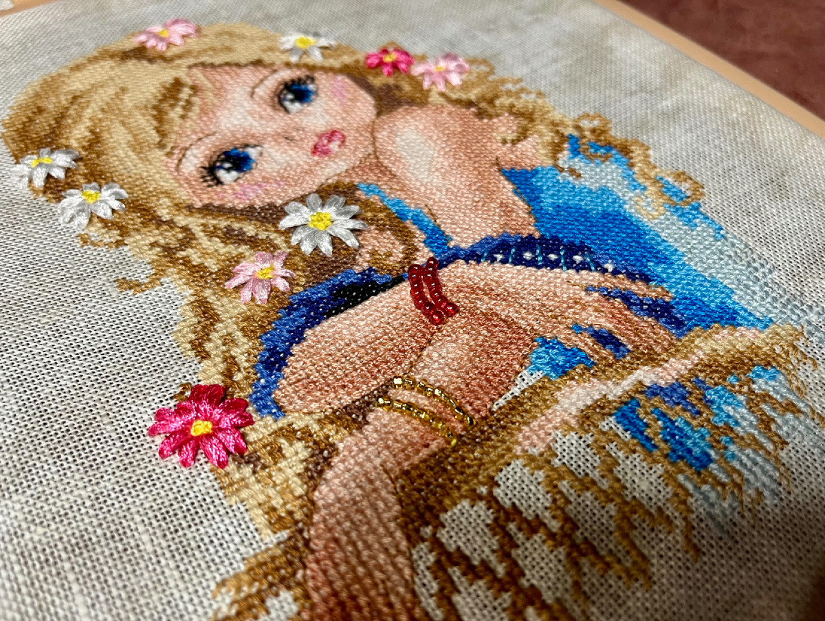 Однажды случайно попался мне в магазине этот набор от «чудесной иглы», и что-то отозвалось в душе. Очень чистая наивная такая девочка на превью… И вот.. закончена работа.. страдания над лентами и переживания над бисером Самая-самая вышла просто отлично!