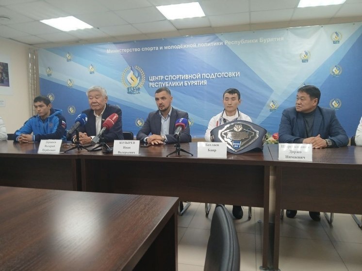 В конференц-зале Центрального стадиона Улан-Удэ прошла пресс-конференция с боксерами. В нем приняли участие министр спорта и молодежной политики Бурятии Иван Козырев, председатель федерации бокса Бурятии Валерий Доржиев, тренеры Доржи Шаргакшанов, Алексей Сенотрусов, Бато-Мунко Ванкеев.