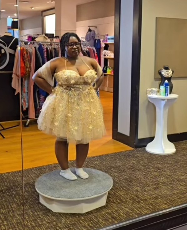 Итак, друзья, нас ждёт вторая, часть "марлезонского балета". Как я поняла, многим понравилась первая статья о выборе свадебного платья американскими толстушками. Поэтому предлагаю вашему вниманию продолжение. Будет много фото. В этот свадебный салон приходят дамы весомых достоинств в поисках платья на свое бракосочетание. Вот одна афроамериканка. Девушка маленького роста, но с большим бюстом. Вот что ей предложили. Такие ноги нужно прятать! Но разрез обязателен. А как восхитительно обтянут животик...и эти бантики на рукавах. Вот ещё ей канареечное платье предложили. И чёрное. Но остановились все же на белом. Правда, на подставке оно более-менее смотрится, а реального как в нем ходить с ее ростом? А дальше наша старая знакомая. В первой серии она так и не смогла подобрать себе 👗 платье. Что не удивительно. Уж очень корпулентная дама. Чего один обхват бедер стоит. Но все же и ей нашли наряд. Вначале зачем-то предложили укороченный вариант. Потом длинное платье с непонятным декором на