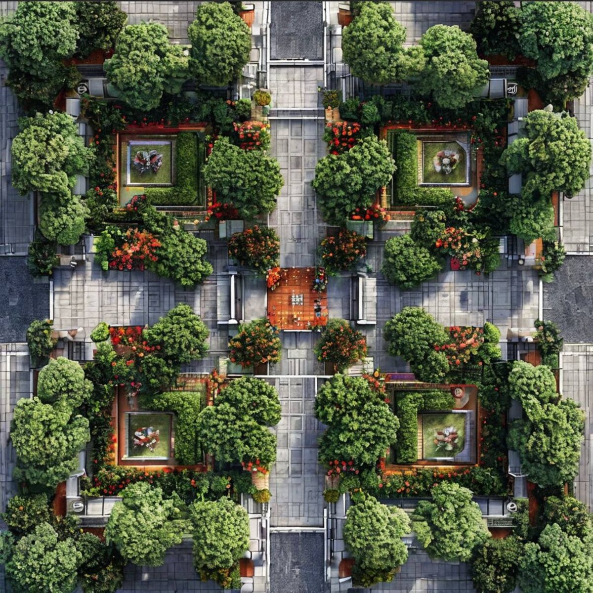 - Симметрия и баланс. Квадратный участок идеально подходит для симметричного дизайна. Использование симметрии в расположении растений, клумб и дорожек поможет создать гармоничное и уравновешенное пространство.