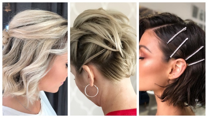 В данной статье вы найдете множество отличных вариантов праздничных причесок для женщин с короткими стрижками. Иногда бывает сложно выбрать подходящий стиль прически, но не отчаивайтесь, наши идеи помогут вам справиться с этой задачей. Если ваша стрижка - это "пикси" или "боб", мы предлагаем вам разнообразить свой повседневный и праздничный облик с помощью трендового плетения. Ажурное плетение на одну из сторон придаст вашим коротким волосам праздничный и ухоженный вид. Коса у лица поможет омолодить облик и сделает вашу внешность более выразительной и запоминающейся. Для стрижки «long bob» отлично подойдет женственная прическа «мальвинка». Собранные по сторонам пряди волос и завязанные на затылке открывают лицо, делают его более выразительным и привлекательным. Чтобы прическа выглядела объемней, стилисты рекомендуют их накрутить на крупную плойку и зафиксировать лаком для волос. Пучок, собранный на затылке, можно украсить актуальными заколками из жемчуга или страз. Легкие кудряшки всег