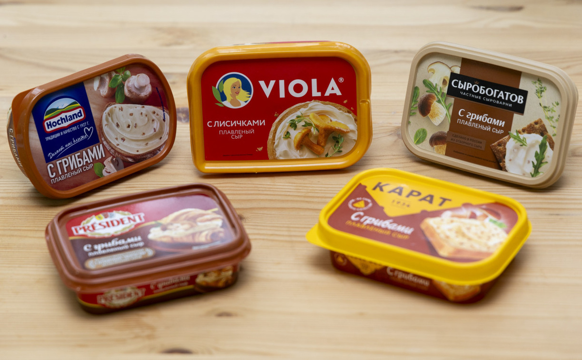 В этот раз мы решили попробовать плавленые сыры с грибами. Для дегустации мы купили сыры пяти торговых марок, которые вы можете найти в любом сетевом магазине: