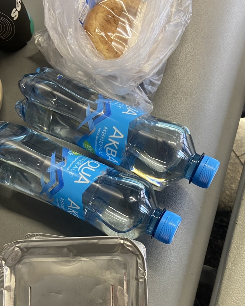 Представители авиакомпании РедВингс предоставили нам воду. А после того, как все поели в кафе аэропорт, предложили и горячий обед. Это он.
