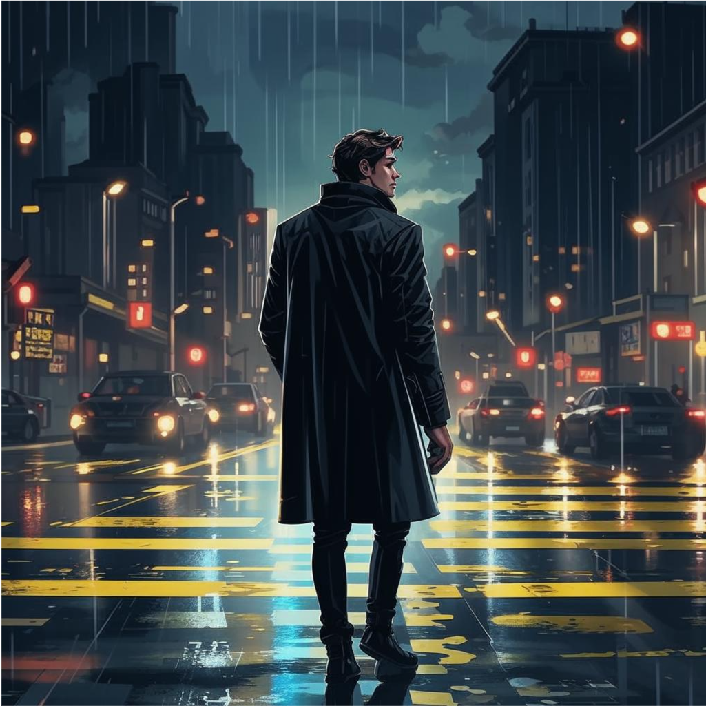 Санька притормозил на светофоре у пешеходного перехода, и положил свою ладонь мне на колено, чем отвлёк от размышлений и заставил поднять глаза. Да вот только взгляд зацепился не за него, а за пешехода в длинном кожаном плаще. Чёрные глаза прохожего встретились с моими зелёными.