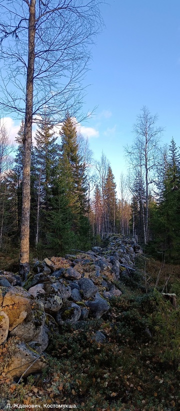 Житель республики показал фото каменной насыпи недалеко от поселка Ледмозеро Муезерского района. Фотографии таинственной каменной стены, проходящей прямо по густому лесу, опубликовал житель Карелии в паблике «АНТИБЕСЕДКА — КОСТОМУКША». По словам мужчины, фото были сделаны на севере Муезерского района, возле поселка Ледмозеро, недалеко от озера Челма. Каменная стена больше всего похожа на аналогичные насыпи в других местах Карелии и на севере Европы, где происходило оледенение. Насыпи складывались из валунов при очистке полей под пашни и пастбища, а, сложенные вдоль кромки поля, одновременно служили преградой для ухода домашнего скота в лес. На это обратили внимание и комментаторы паблика. Но, по словам автора фото, странным показалось то, что эта стена расположена посреди достаточно густого леса на крутом склоне горы. Маловероятно, чтобы в таком месте располагалось расчищенное поле. При этом, впрочем, фотограф упомянул, что недалеко располагалась заброшенная ныне карельская деревня. Са